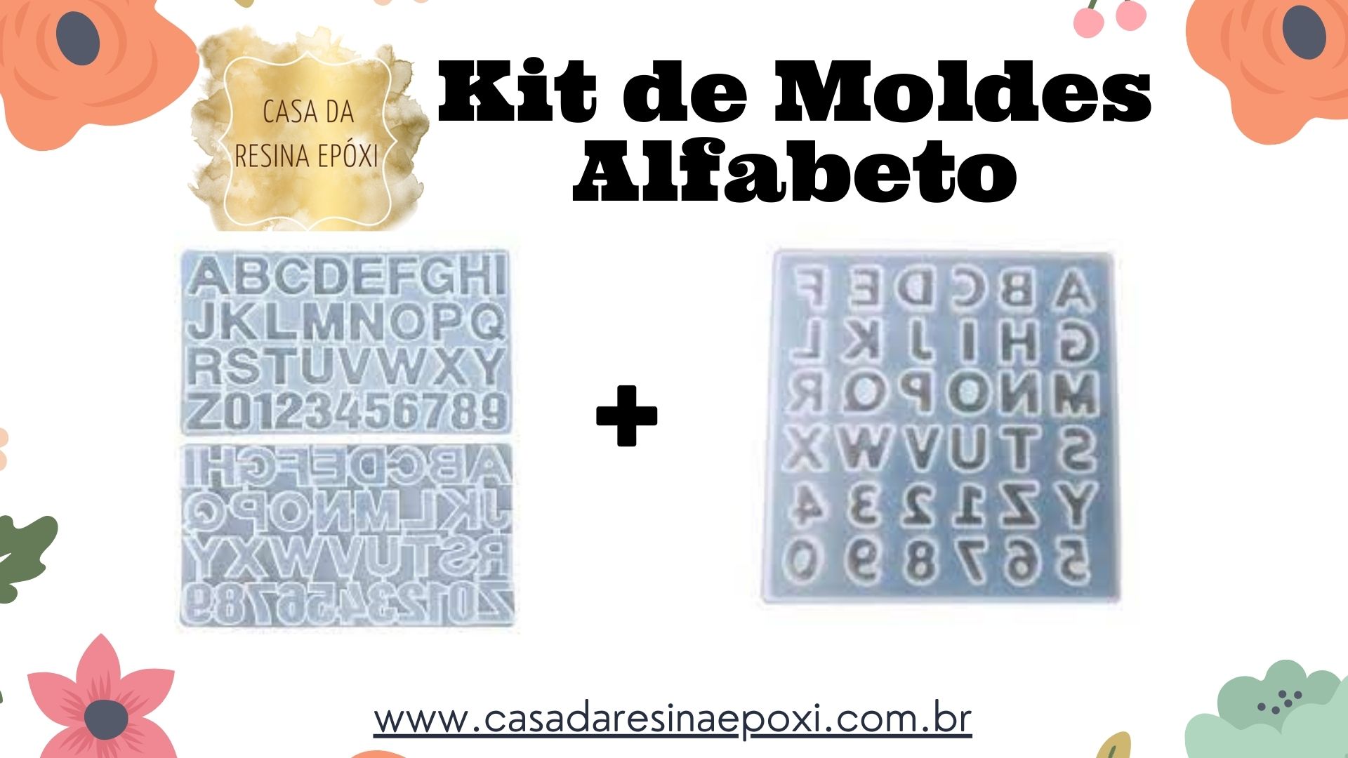 Kit Molde Silicone – Alfabeto Invertido 4cm p/ Letra + Molde Silicone – Mini Alfabeto Invertido 1.5cm p/ Letra